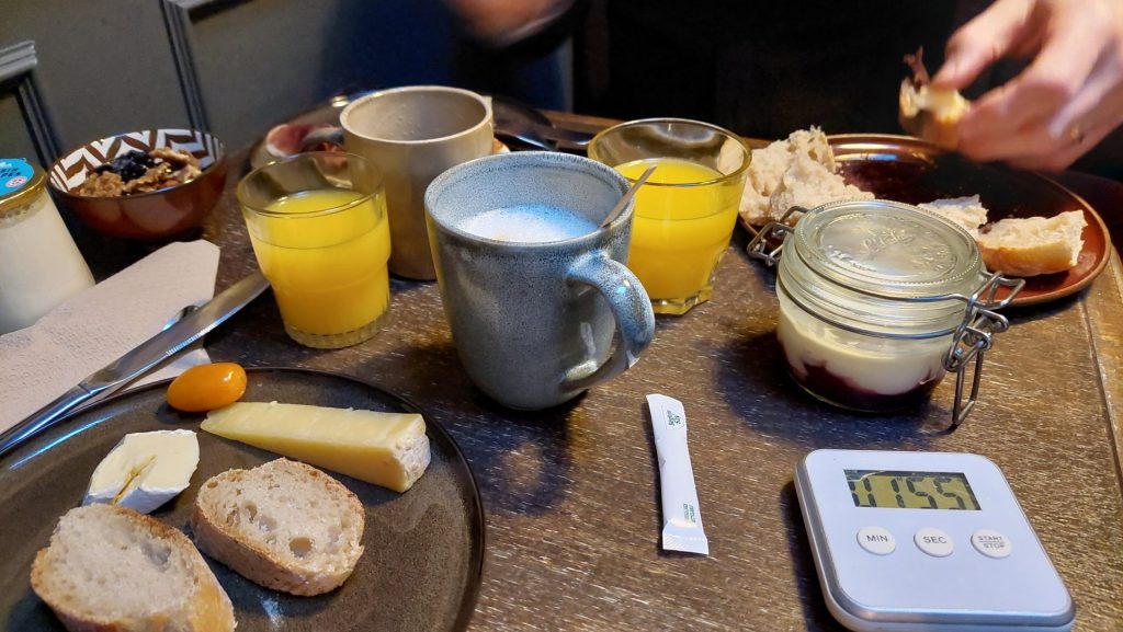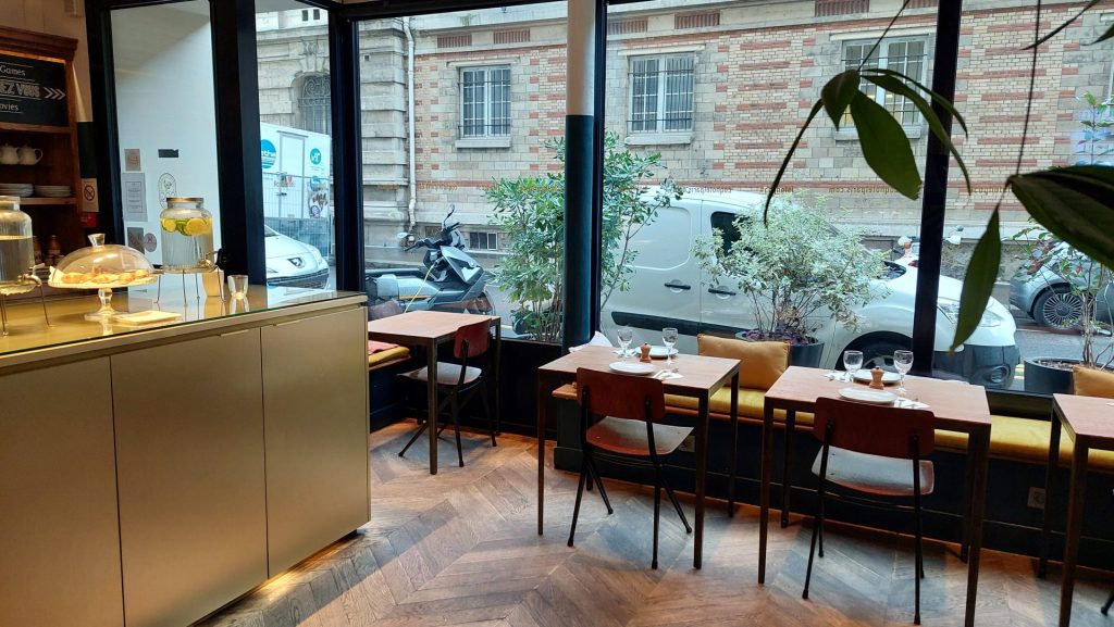 Mikäli haluat yöpyä useampia öitä tässä hotellissa, tämän paikan tumma sisustus käytävillä ja huoneissa alkaa varmasti tuntua no, tummalta. Mutta pari yötä meni oikein tunnelmallisesti. Aamupala on suht perinteinen, mutta riittävä. Normi ähkyn jälkeen pärjää monet kävelyt, kaikkea perusjuttua (ja laadukasta sellaista) on. Niin ja heidän leipänsä tulee kuuluisasta Poilane:n leipomosta, joten senkin pääsi maistamaan. Hyvää, muttei nyt niiiin taivaallista. Meillä kun saa Suomessa avot hyvää leipää.