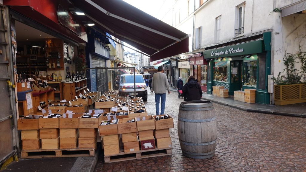 Mouffetard -katu sattui tulemaan eteen. Se on Pariisin vanhimpia katuja ja täynnä pieniä putiikkeja. Muutama kauppias oli levittäytynyt kadullekin tuotteidensa kanssa. Tämä katu on varsinaiseen turistiaikaan kuulema aina ihan täynnä porukkaa, mutta tammikuisena aamupäivänä siellä oli mukavan rauhallista. Ja hyvin idyllistä. Senverran idyllisen hempeäksi heittäytyi ilmapiiri, että piti pistäytyä yhteen putiikkiinkin ihastelemaan kauniita käsitöitä. Ja niinhän sieltä jatkettiin matkaa narukahvaisen paperikassin kanssa.